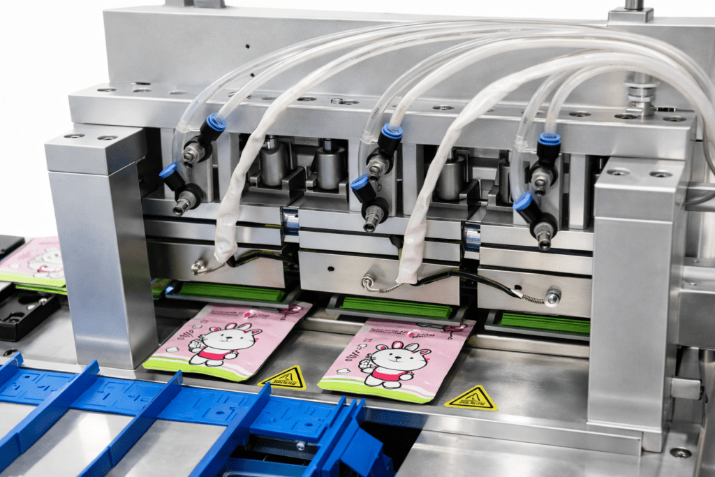 “파우치를 자동 공급하여 내품을 인입하고, 정밀 실링으로 완성 포장하는 일체형 파우치 포장 라인"